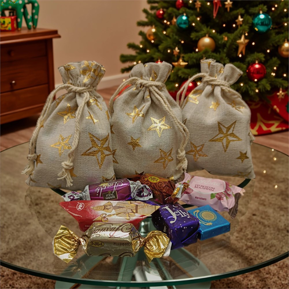 Сладкий новогодний презент в льняном мешочке 90г (набор конфет)